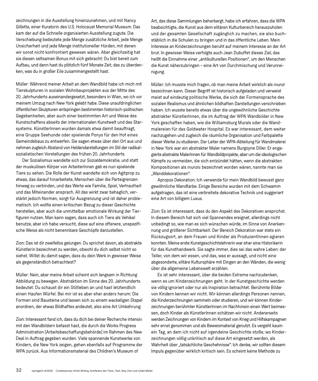 Ulrike Müller and I spoke about our project, The Conference of the Animals, which had just opened at the Queens Museum, New York. The resulting conversation was edited and translated into German and appeared in the print Issue 4/2020 of Springerin.